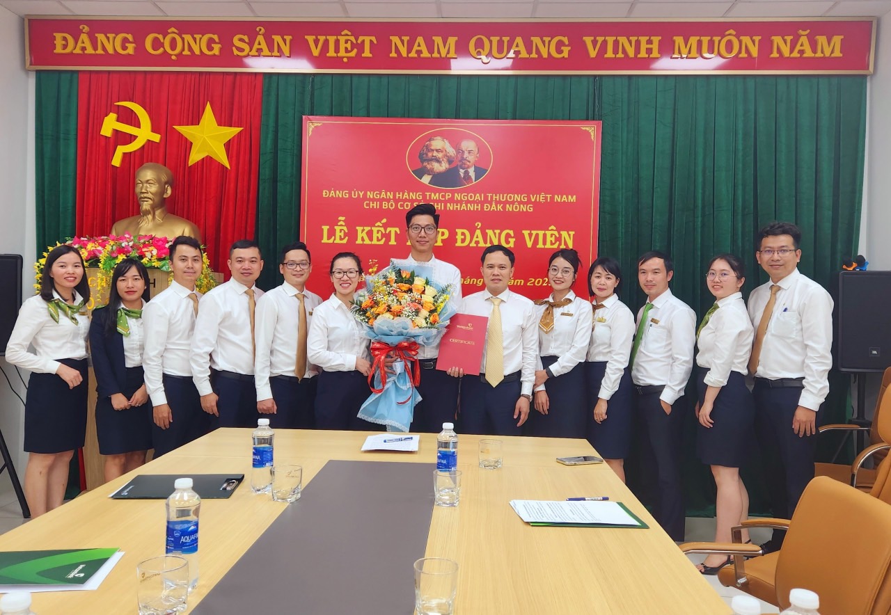 Tham dự buổi Lễ có đ/c Lê Kỳ - Bí thư Chi bộ, Giám đốc Vietcombank Đăk Nông; đ/c Trần Phạm Như Phương - Chủ tịch công đoàn, Phó Giám đốc; đại diện Ban Chấp hành Chi đoàn, cùng toàn thể đảng viên và các quần chúng ưu tú của Chi nhánh.