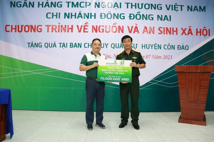 Trong chương trình về nguồn, chi nhánh đã đến thăm đơn vị tiểu đoàn 2 thuộc Ban chỉ huy quân sự huyện Côn Đảo. Tại đây thay mặt chi bộ, đ/c Trần Thành Nam đã trao tặng phần quà trị giá 70 triệu đồng cho cán bộ chiến sĩ tại đơn vị.