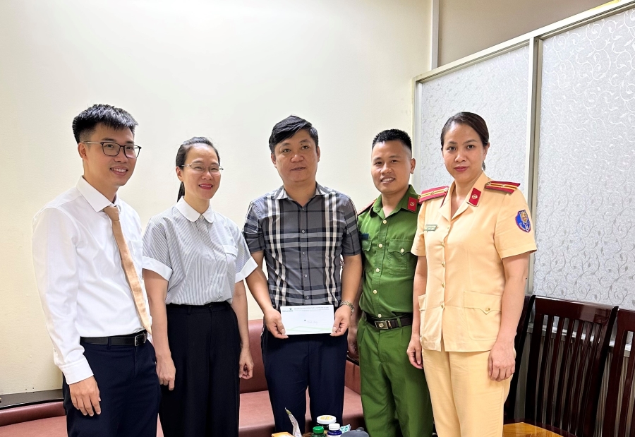 Đại diện Vietcombank Đông Hải Phòng trao quà cho đại diện Công đoàn công an huyện Thủy Nguyên