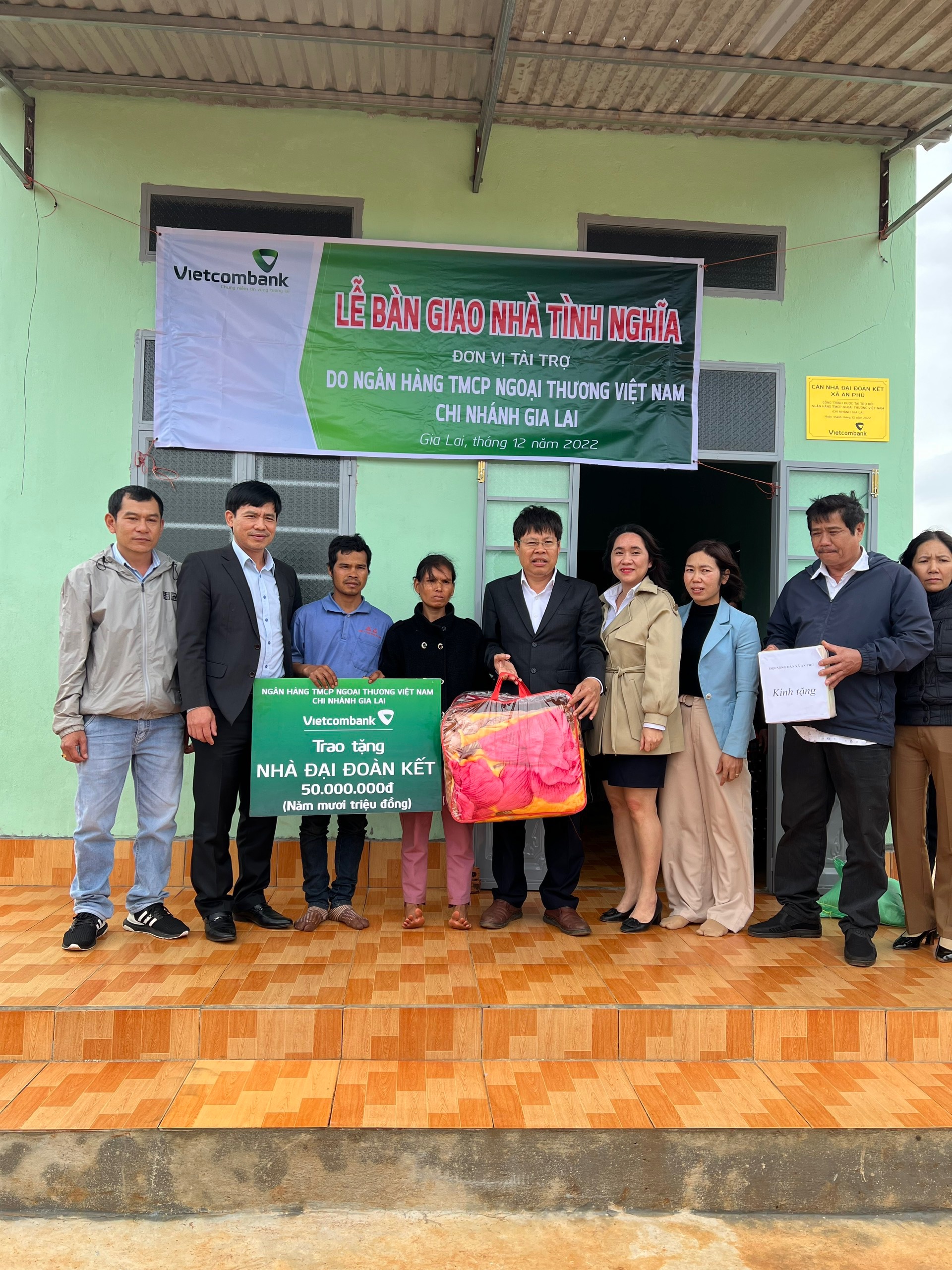 Vietcombank Gia Lai luôn thực hiện các chương trình an sinh xã hội có ý nghĩa thiết thực hiện trên địa bàn. Việc trao tặng các căn nhà tình nghĩa thể hiện nghĩa cử cao đẹp và là tấm lòng của cán bộ, nhân viên Vietcombank Gia Lai với mong muốn được sẻ chia và tiếp thêm động lực cho những gia đình có hoàn cảnh khó khăn nỗ lực vươn lên trong cuộc sống.