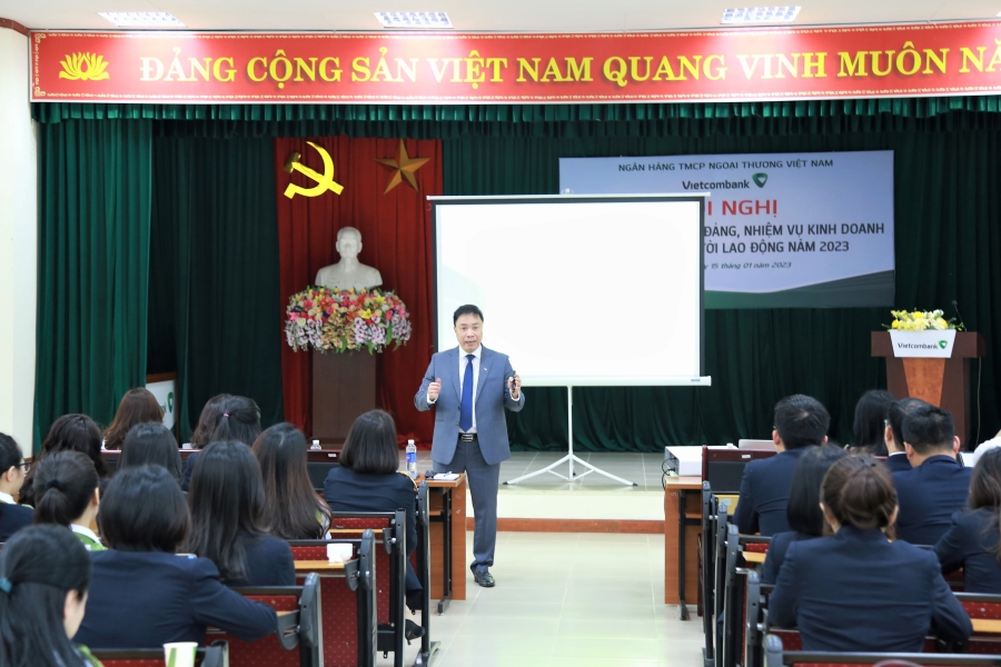 Hội nghị đã được xem clip tổng kết hoạt động kinh doanh Vietcombank năm 2022. Ông Phan Viết Phong - Bí thư Đảng ủy, Giám đốc chi nhánh trình bày báo cáo kết hoạt động kinh doanh năm 2022, triển khai nhiệm vụ năm 2023. Trong năm 2022, Chi nhánh đã đạt được một số thành tích nổi bật: năm thứ 04 liên tiếp hoàn thành xuất sắc nhiệm vụ; Lợi nhuận đạt và vượt chỉ tiêu. Tuy nhiên, Chi nhánh cũng nêu ra một số hạn chế cần thay đổi, khắc phục trong năm tiếp theo, đồng thời dự báo những thuận lợi, khó khăn của năm 2023 và đề ra mục tiêu cho Chi nhánh.