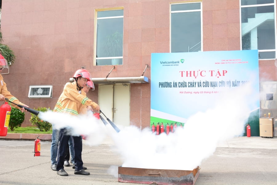 Đây là hoạt động thường niên tại Vietcombank Hải Dương nhằm nâng cao ý thức cảnh giác, tinh thần chủ động trong công tác PCCC của toàn thể cán bộ nhân viên, hướng dẫn thao tác sử dụng các phương tiện chữa cháy tại chỗ, kỹ năng thoát nạn, cứu người, cứu tài sản…đồng thời kiểm tra khả năng vận dụng những kiến thức đã được đào tạo vào các tình huống cháy nổ giả định xảy ra.