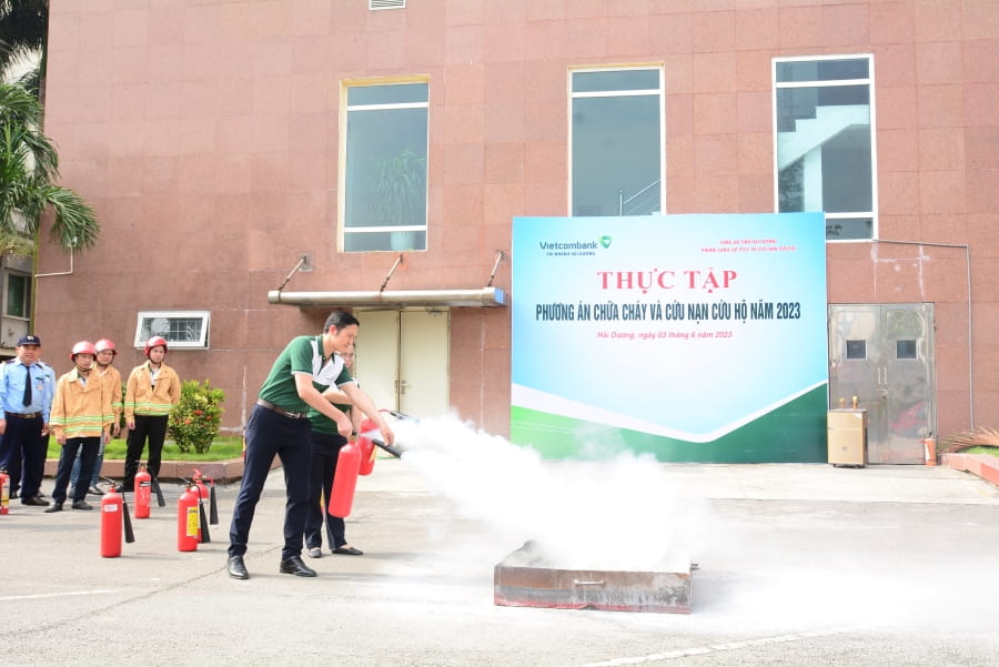 Vietcombank Hải Dương tổ chức thực tập công tác phòng cháy chữa cháy và cứu nạn cứu hộ năm 2023