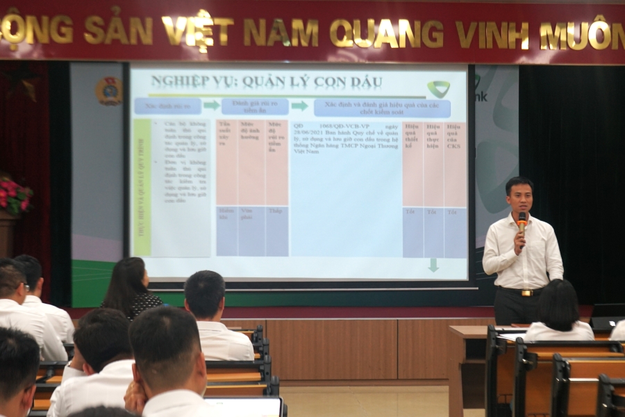 Trong quá trình diễn ra, đại diện mỗi nhóm đã lên trình bày, đánh giá chi tiết từng rủi ro trong danh mục rủi ro của từng nghiệp vụ và đề xuất một số biện pháp nhằm phòng ngừa và hạn chế các rủi ro. Sau quá trình phân tích, thảo luận sôi nổi, hội thảo đã thống nhất được kết quả đánh giá rủi ro trong các nghiệp vụ và đề xuất thêm nhiều biện pháp kiểm soát rủi ro hiệu quả và khả thi.