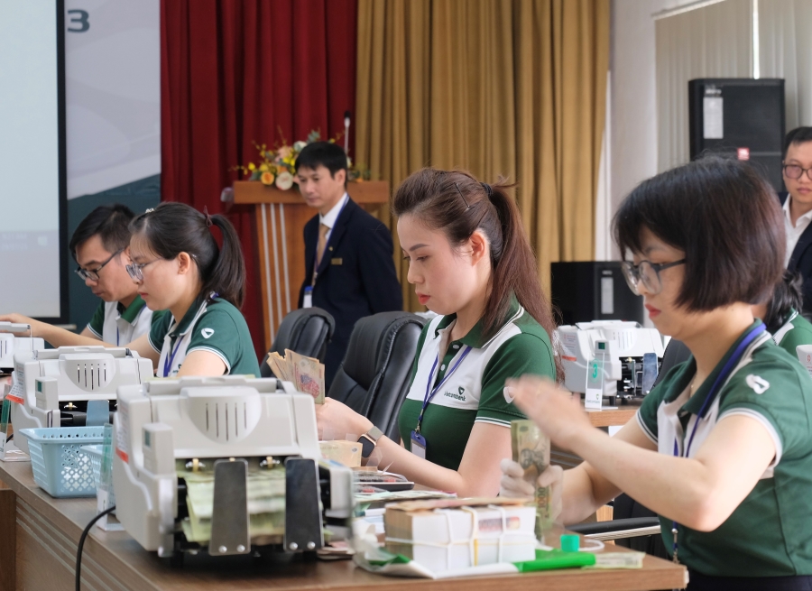 Qua khoảng thời gian học tập, nghiên cứu quy trình nghiệp vụ ngân quỹ và dựa trên kinh nghiệm thực tiễn, các thí sinh nhanh chóng hoàn thành vòng thi lý thuyết trong 30 phút với 40 câu hỏi trắc nghiệm. Trong đó 15 thí sinh xuất sắc nhất tiếp tục bước vào vòng thi thực hành kiểm đếm, phân loại và phát hiện tiền giả, tiền không đủ tiêu chuẩn lưu thông.