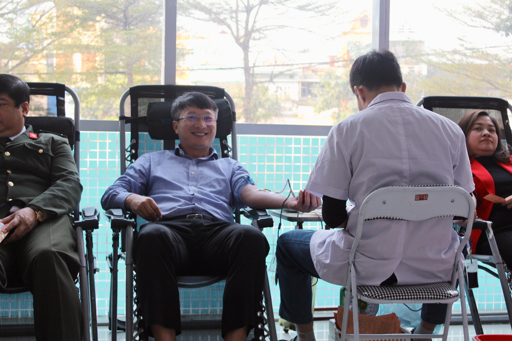 Ông Đinh Mạnh Tuân - Giám đốc chi nhánh tham gia hiến máu