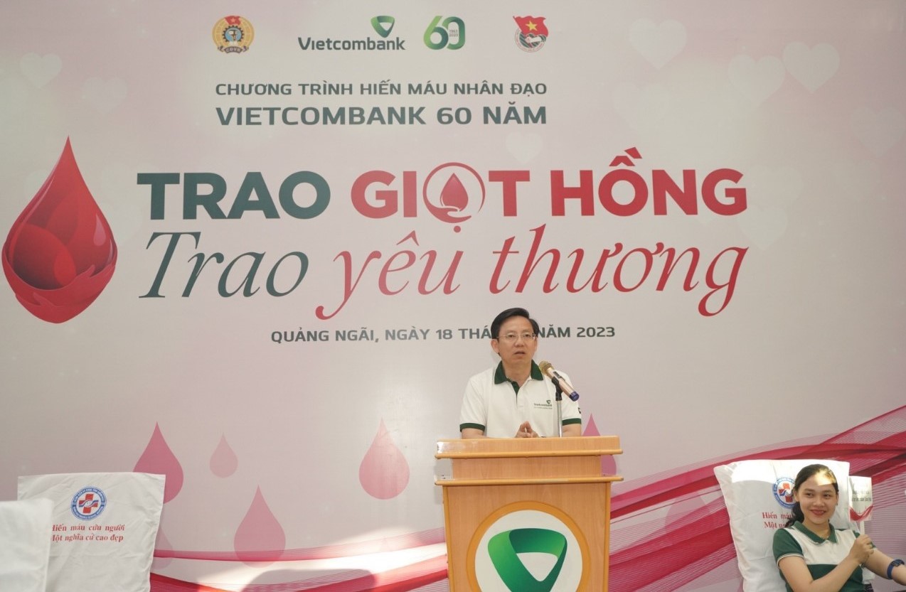 Ông Võ Văn Linh - Giám đốc Vietcombank Quảng Ngãi phát động chương trình và tri ân những người tham gia hiến máu