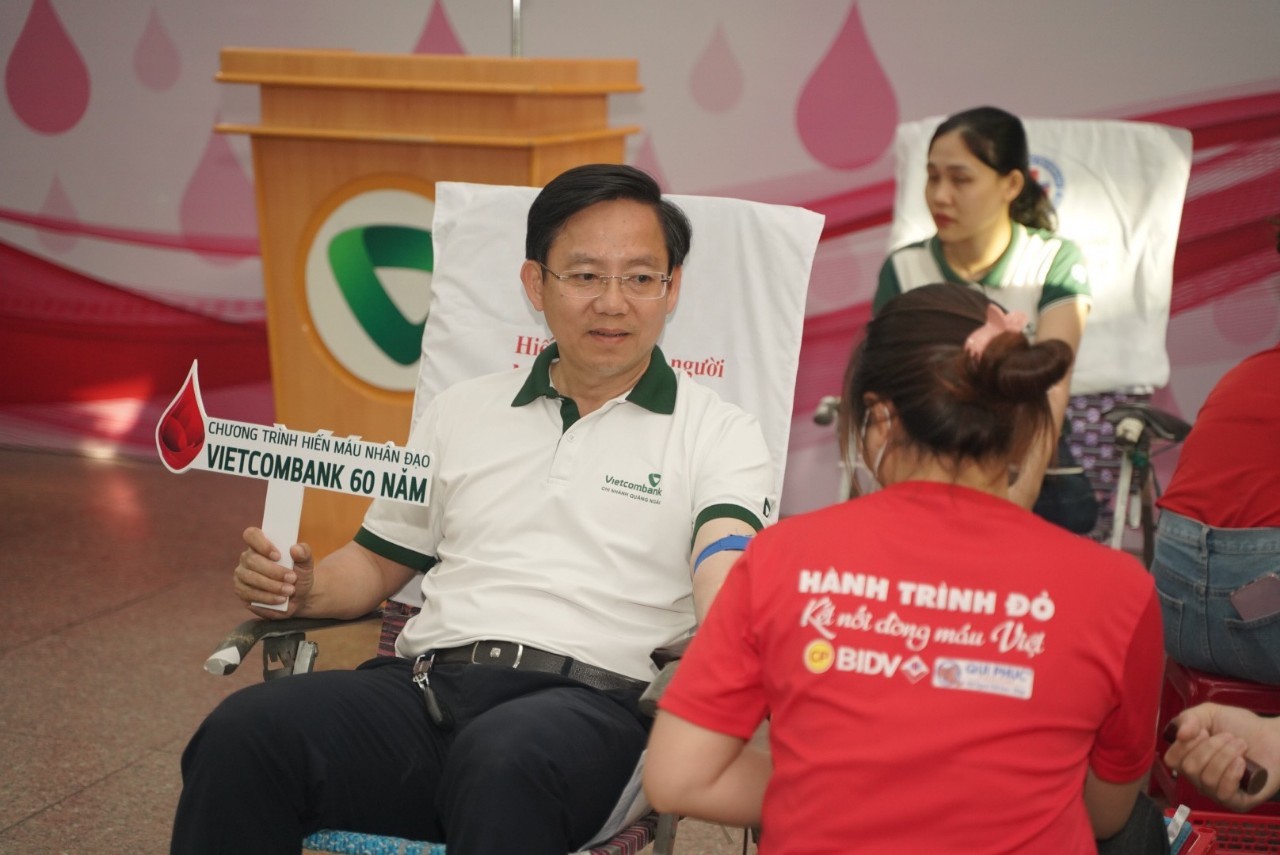 Ông Võ Văn Linh - Giám đốc Vietcombank Quảng Ngãi tham gia chương trình hiến máu “Trao giọt hồng -Trao yêu thương”