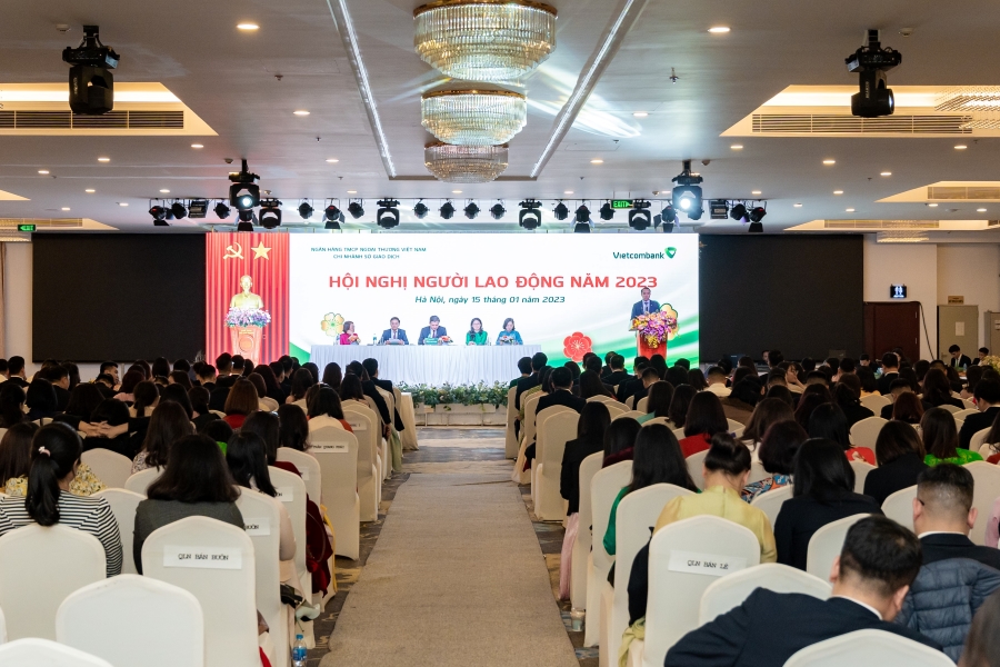 Phát biểu chỉ đạo tại Hội nghị, đ/c Đỗ Việt Hùng - Phó Bí thư thường trực Đảng ủy, thành viên HĐQT Vietcombank đã ghi nhận và biểu dương những kết quả đạt được của Vietcombank Sở giao dịch trong năm 2022. Nhờ có những kết quả nổi trội trong hoạt động kinh doanh, Vietcombank nói chung và chi nhánh Sở giao dịch nói riêng luôn đảm bảo đầy đủ quyền lợi hợp pháp và chất lượng cuộc sống cho cán bộ nhân viên. Năm 2022, Vietcombank tiếp tục khẳng định vị thế là ngân hàng có môi trường làm việc hấp dẫn nhất khi được bình chọn xếp thứ 1 toàn ngành ngân hàng, xếp thứ 3 toàn thị trường Việt Nam và trong Top 50 doanh nghiệp Việt có thương hiệu nhà tuyển dụng hấp dẫn nhất. Đóng góp vào kết quả chung này, chi nhánh Sở giao dịch đã nỗ lực tạo dựng và duy trì môi trường làm việc tốt nhất, chăm lo chu đáo, tạo điều kiện tốt nhất về cả vật chất và tinh thần, cân bằng cuộc sống và công việc cho mỗi cán bộ nhân viên yên tâm công tác và cống hiến. Công tác an sinh xã hội đã được Ban Giám đốc và BCH Công đoàn Sở giao dịch quan tâm thực hiện, thể hiện trách nhiệm xã hội của doanh nghiệp đối với cộng đồng.