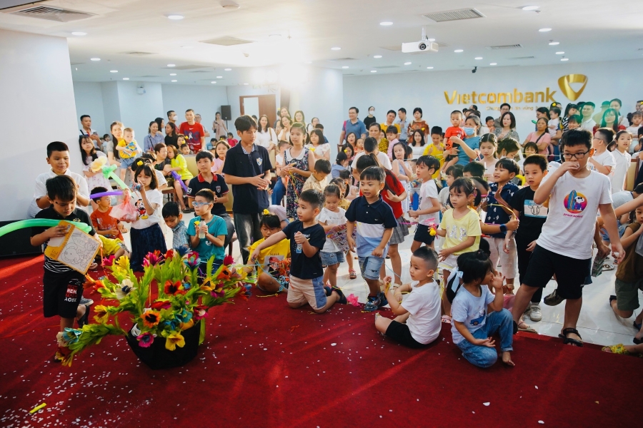 Đến tham dự chương trình có đại diện BCH Đảng ủy, Công đoàn, Đoàn Thanh niên cùng sự có mặt của đông đảo các cháu thiếu nhi và các bậc phụ huynh là cán bộ nhân viên đang công tác tại Vietcombank Sở giao dịch.