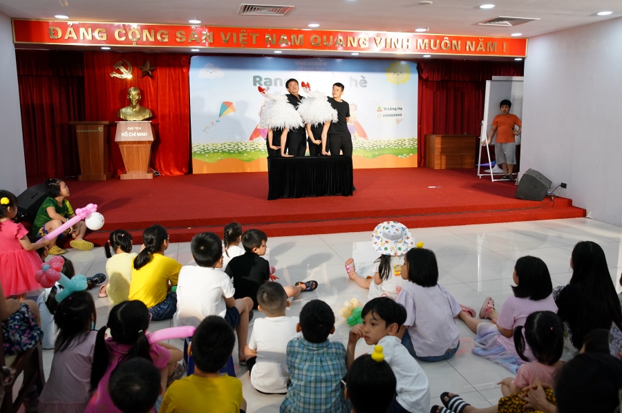 Với tình cảm yêu thương và trách nhiệm, chương trình vui Tết thiếu nhi 1/6 đã được BCH Công đoàn và Đoàn Thanh niên Vietcombank Sở giao dịch lên kế hoạch chuẩn bị từ rất sớm. Chương trình “Rạng rỡ sắc hè” được dàn dựng chu đáo, công phu và thu hút sự có mặt của gần 300 em thiếu niên nhi đồng là con em cán bộ Vietcombank Sở giao dịch đến tham dự.