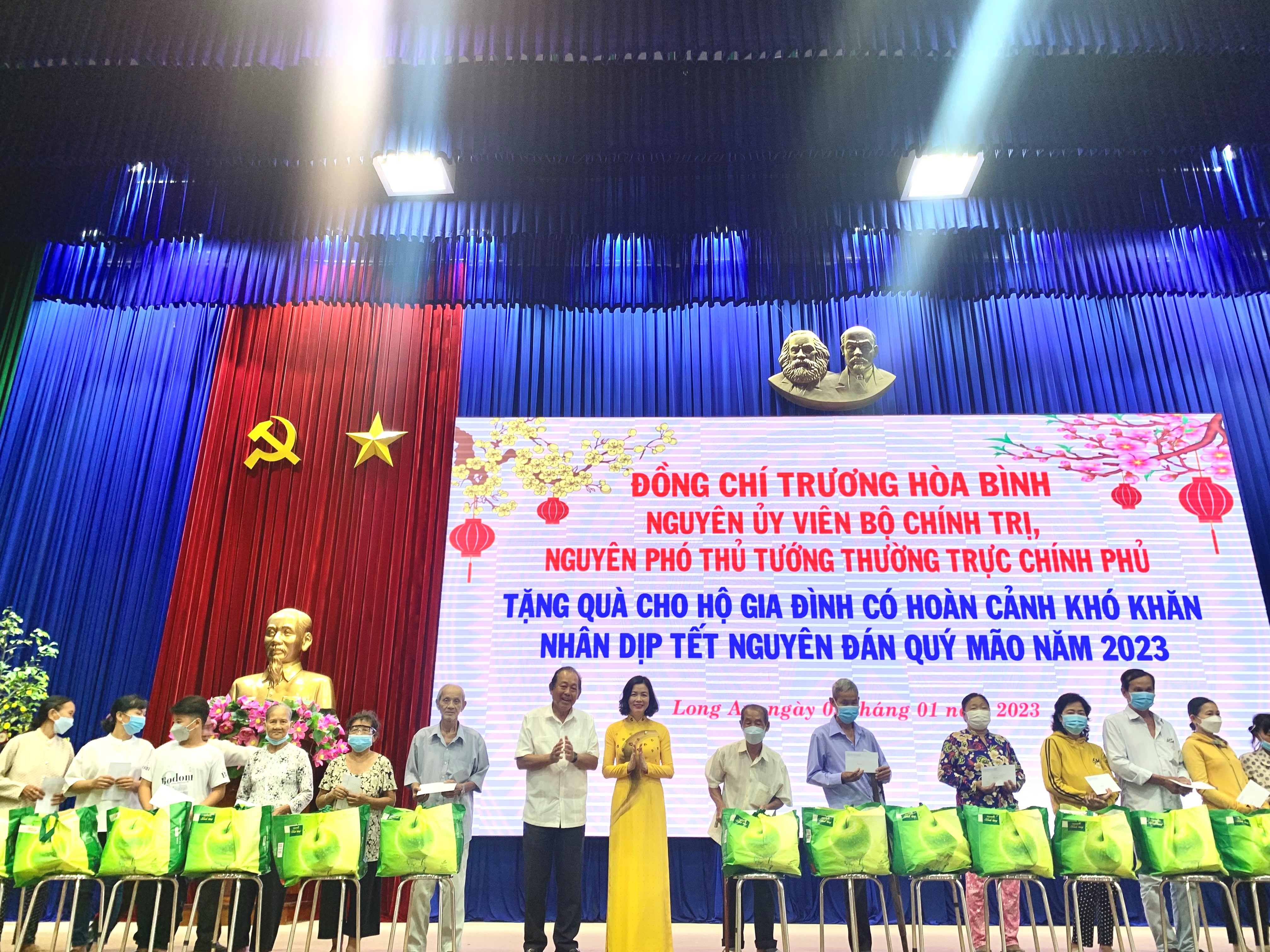 Phát biểu tại buổi lễ, ông Phạm Tấn Hòa - Phó Chủ tịch UBND tỉnh Long An đã gửi lời tri ân sâu sắc đến đồng chí Trương Hòa Bình cùng các đơn vị tài trợ đã luôn quan tâm chung tay cùng tỉnh nhà chăm lo cho các hộ gia đình còn nhiều khó khăn, vất vả bằng những phần quà rất thiết thực và đúng lúc.