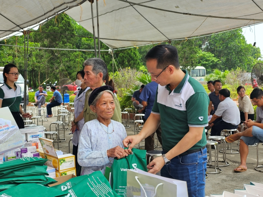 Một số hình ảnh Vietcombank Tây Hồ và các bác sỹ bệnh viện Hữu Nghị hướng dẫn và khám bệnh cho bà con.