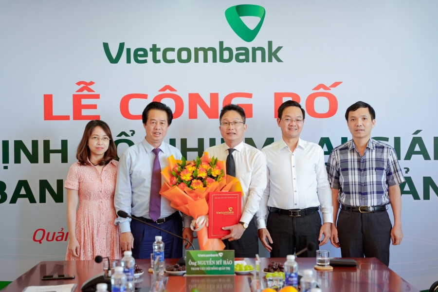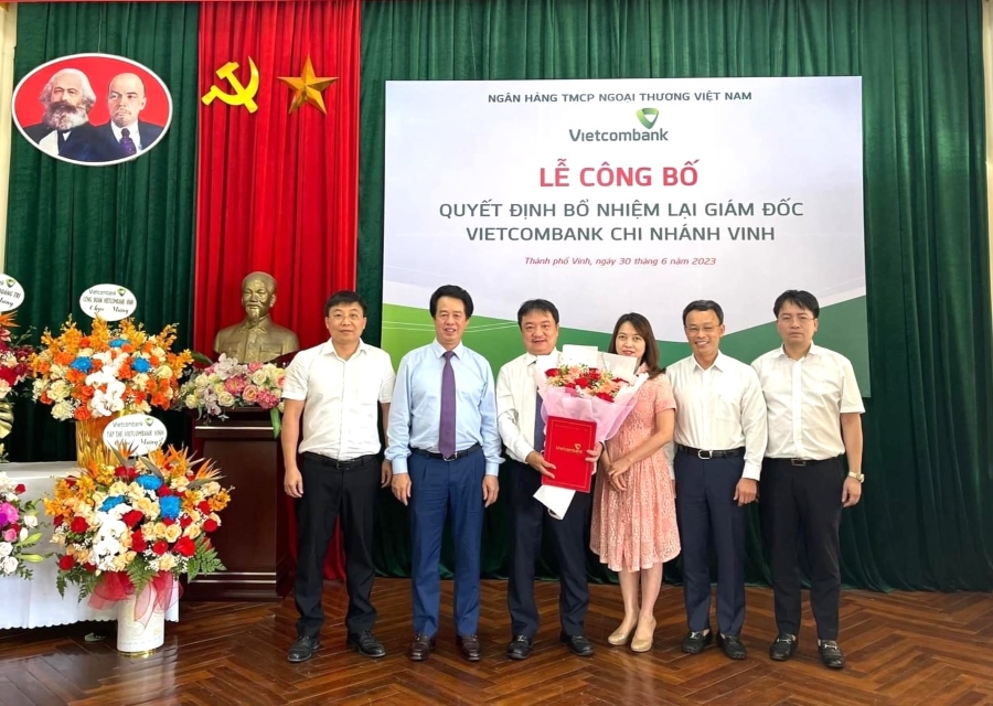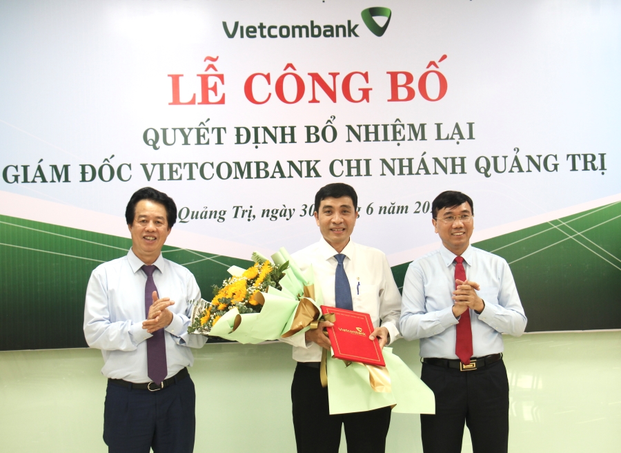 Tại buổi lễ, đại diện Ban Tổ chức & nhân sự Vietcombank đã công bố các quyết bổ nhiệm lại Giám đốc các chi nhánh Quảng Bình, Quảng Trị, Vinh. Theo đó, tại quyết định số 1358/QĐ-VCB-TCNS ngày 30/6/2023, HĐQT Vietcombank bổ nhiệm lại ông Nguyễn Thanh Bình giữ chức vụ Giám đốc Vietcombank Quảng Bình kể từ ngày 1/7/2023; tại quyết định số 1366/QĐ-VCB-TCNS ngày 30/6/2023, HĐQT Vietcombank bổ nhiệm lại ông Lê Hồng Quảng giữ chức vụ Giám đốc Vietcombank Vinh kể từ ngày 1/7/2023; tại quyết định số 1369/QĐ-VCB-TCNS ngày 30/6/2023, HĐQT Vietcombank bổ nhiệm lại ông Trần Thanh Hải giữ chức vụ Giám đốc Vietcombank Quảng Trị kể từ ngày 1/7/2023.