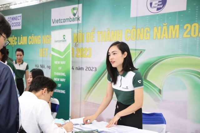 Trong thời gian vừa qua, Vietcombank và Trường Đại học Công nghệ thuộc Đại học Quốc gia Hà Nội đã xây dựng mối quan hệ hợp tác chặt chẽ, gắn bó, đồng hành cùng phát triển trong nhiều hoạt động. Sự kiện Ngày hội việc làm công nghệ 2023 là hoạt động hợp tác thiết thực giữa hai bên, tạo cầu nối giúp các em sinh viên tìm hiểu cơ hội nghề nghiệp tại một trong những ngân hàng thương mại lớn nhất Việt Nam đồng thời được tư vấn định hướng nghề nghiệp trong tương lai.
