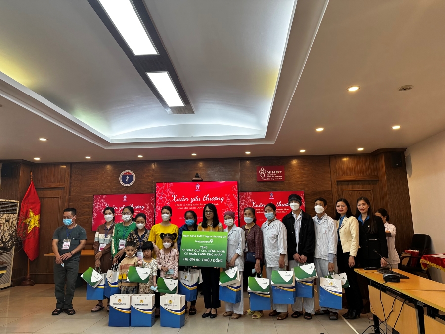 Tại sự kiện, Vietcombank đã trao tặng 50 suất quà trị giá 50 triệu đồng cho bệnh nhân có hoàn cảnh khó khăn. Đồng hành cùng Viện Huyết học - Truyền máu Trung ương, Vietcombank tiếp tục khẳng định cam kết mạnh mẽ của một ngân hàng phát triển bền vững vì cộng đồng, tích cực đóng góp cho các hoạt động an sinh xã hội. Năm 2022, Vietcombank đã tích cực thực hiện các hoạt động an sinh xã hội với tổng cam kết 491 tỷ đồng. Trong hành trình 60 năm xây dựng và phát triển, chính những hoạt động an sinh xã hội vì cộng đồng của Vietcombank đã thể hiện sâu sắc văn hóa doanh nghiệp nhân văn, bền vững, góp phần đưa hình ảnh của ngân hàng đến gần hơn với cộng đồng.