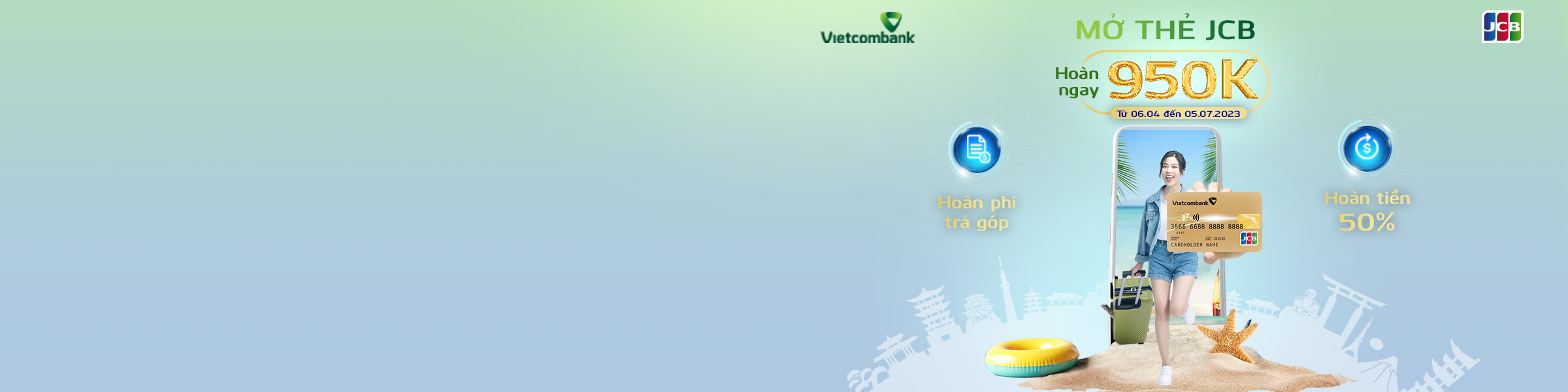 Ưu đãi hoàn tiền: Hoàn 150.000 VND mỗi tháng cho các khách hàng phát hành mới và có giao dịch chi tiêu bằng thẻ tín dụng Vietcombank JCB hạng vàng từ 300.000 VND