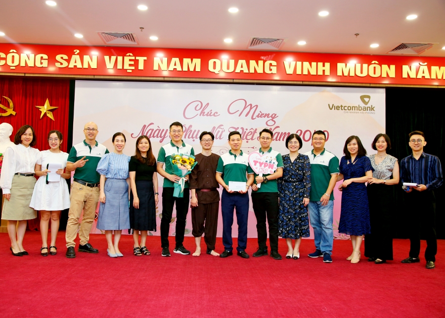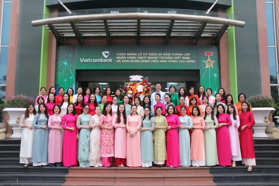 Bên cạnh đó, sáng ngày 18/10/2023, tại trụ sở chi nhánh, ông Lê Ngọc Thái - Bí thư Đảng ủy, Giám đốc chi nhánh đã tặng hoa và gửi lời chúc mừng đến toàn thể các CBNV nữ của Vietcombank Hải Phòng. Tất cả các chị em phụ nữ của Chi nhánh trong những tà áo dài rực rỡ màu sắc đã cùng nhau chụp những bức ảnh kỷ niệm trong ngày tôn vinh ngày Phụ nữ Việt Nam.