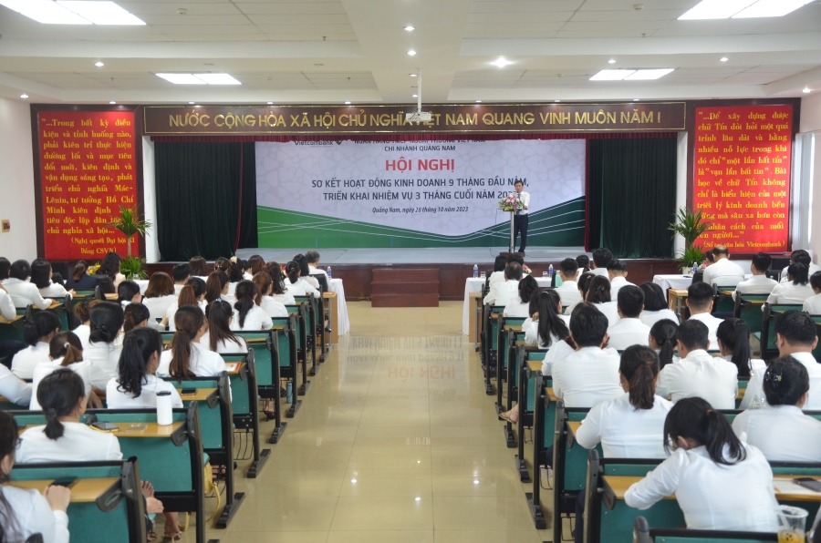 Chiều ngày 28/10/2023, tại trụ sở Chi nhánh, Vietcombank Quảng Nam đã tổ chức Hội nghị sơ kết hoạt động kinh doanh 9 tháng đầu năm và triển khai nhiệm vụ 3 tháng cuối năm 2023.
