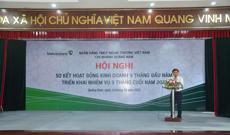 Tại hội nghị, ông Trịnh Phú Tín - Phó Giám đốc Chi nhánh đã báo cáo kết quả hoạt động kinh doanh 9 tháng đầu năm và định hướng triển khai nhiệm vụ 3 tháng cuối năm 2023 của Vietcombank Quảng Nam. Thông qua nội dung báo cáo, toàn thể Chi nhánh đã thấy được bức tranh toàn cảnh về kết quả hoạt động kinh doanh trong 9 tháng đầu năm và thị phần trên địa bàn tỉnh. Từ đó, đưa ra các giải pháp tổ chức thực hiện các chỉ tiêu kinh doanh các tháng cuối năm 2023.