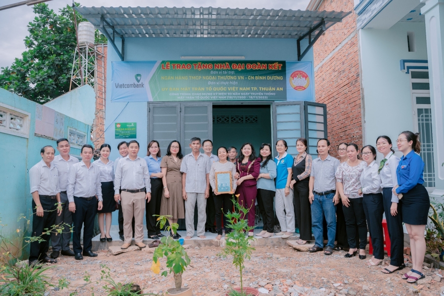 Ngày 17/11/2023, Vietcombank Bình Dương đã phối hợp với Ban vận động Quỹ vì người nghèo tỉnh Bình Dương cùng Ủy ban Mặt trận Tổ quốc thành phố Thuận An tổ chức lễ trao tặng và bàn giao 5 căn nhà đại đoàn kết cho 5 hộ gia đình có hoàn cảnh khó khăn trên địa bàn.