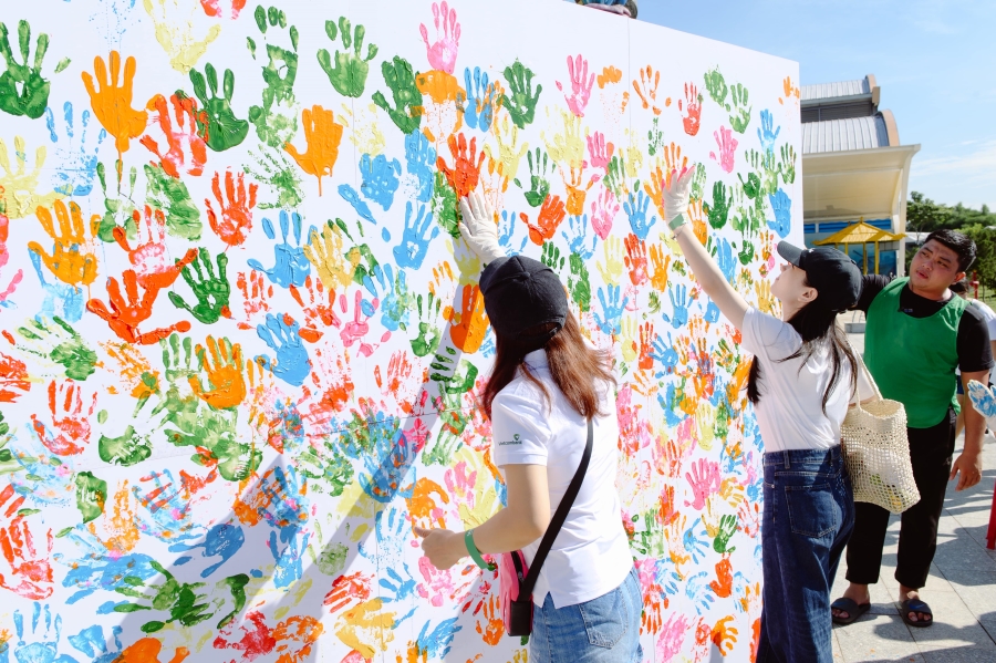 Cán bộ, nhân viên, người lao động chi nhánh cùng trang trí photobooth bằng cách in bàn tay