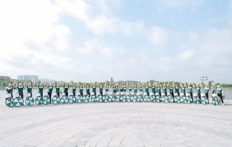 Đội hình tham gia diễu hành bằng xe đạp của Đoàn thanh niên Vietcombank Bắc Ninh
