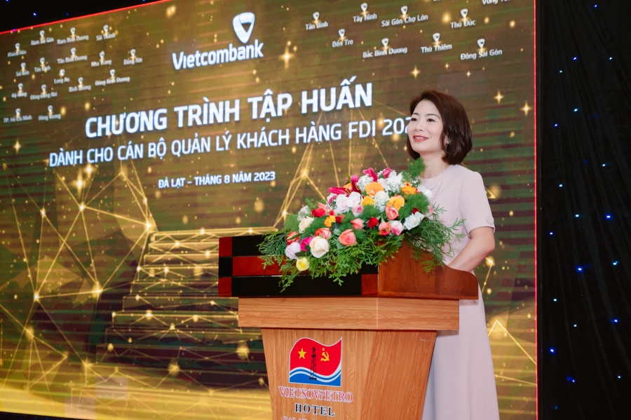 Bà Bùi Thị Thanh Thu - Giám đốc Ban khách hàng FDI Vietcombank phát biểu khai mạc tại chương trình tập huấn