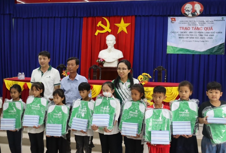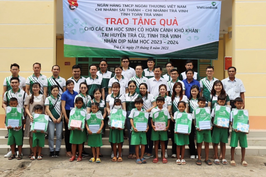Nhân dịp khai giảng năm học mới 2023-2024, ngày 19/08/2023, Công đoàn và Đoàn thanh niên Vietcombank Sài Thành kết hợp cùng Vietcombank Trà Vinh đã tổ chức trao tặng 200 phần quà cho các em học sinh có hoàn cảnh khó khăn tại huyện Trà Cú, tỉnh Trà Vinh.