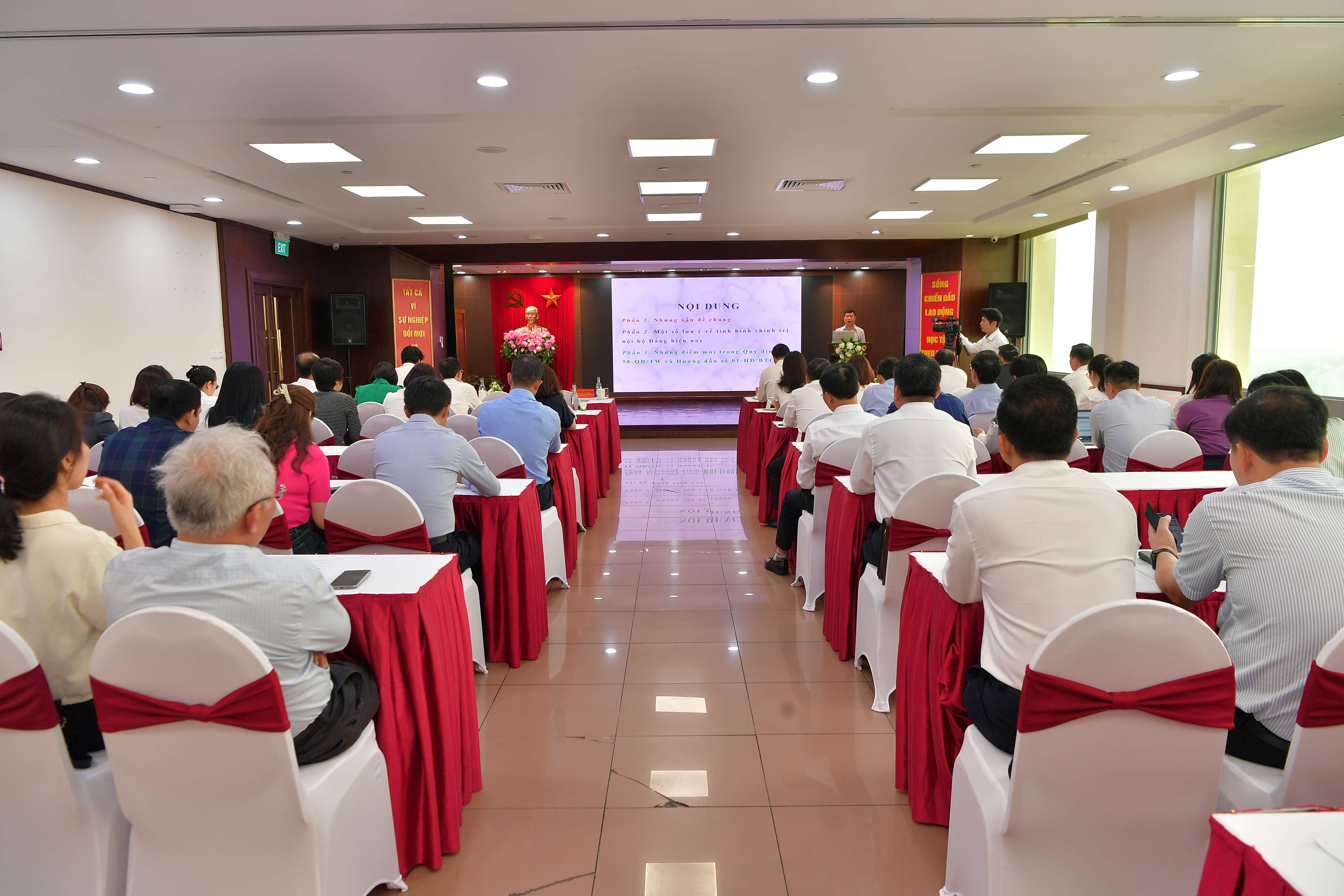 Phát biểu tại Hội nghị, đ/c Hồng Quang - Ủy viên Ban thường vụ, Trưởng ban Tổ chức Đảng ủy, Thành viên HĐQT cho biết: Học tập là một vấn đề rất quan trọng trong đời sống thường ngày và trong công tác, học tập vừa là nghĩa vụ, vừa là quyền lợi quan trọng của mỗi cán bộ, đảng viên. Khi đề cập đến tầm quan trọng của công tác đào tạo, bồi dưỡng cán bộ, Chủ tịch Hồ Chí Minh đã nói: “Huấn luyện cán bộ là công việc gốc của Đảng”, “Học để làm việc, làm người, làm cán bộ”… Hội nghị tập huấn, bồi dưỡng nghiệp vụ về công tác đảng năm 2023 đã mời được các báo cáo viên là các đồng chí lãnh đạo, những người có kiến thức sâu rộng, giàu kinh nghiệm thực tiễn đến giới thiệu, trao đổi, truyền đạt 5 nội dung chuyên đề về công tác Đảng. Do thời gian học không nhiều, cộng việc bận rộn, khẩn trương, nội dung chương trình lớn nên đồng chí Hồng Quang - Ủy viên Ban thường vụ, Trưởng ban Tổ chức Đảng ủy, Thành viên HĐQT đề nghị các đại biểu tham dự hội nghị cần giành thời gian tối đa, tập trung lắng nghe, ghi chép đầy đủ các nội dung; tích cực trao đổi, thảo luận, nắm bắt các vấn đề thật chắc, thật kỹ để sau khi hội nghị kết thúc, mỗi đại biểu có thể vận dụng ngay những kiến thức, những hiểu biết lĩnh hội được vào thực tiễn hoạt động của mình.