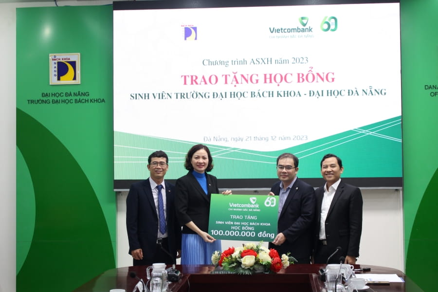 Trong hai ngày 21 & 22/12/2023, Vietcombank Bắc Đà Nẵng đã thực hiện trao học bổng cho các em sinh viên có hoàn cảnh khó khăn, vượt khó trong học tập tại một số trường đại học trực thuộc Đại học Đà Nẵng, gồm các trường đại học: Bách khoa Sư phạm, Kinh tế và Sư phạm kỹ thuật với tổng số tiền trao tặng là 500 triệu đồng.