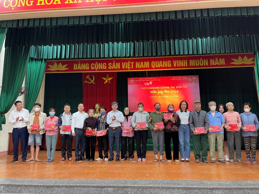 Nhân dịp Tết nguyên đán Giáp Thìn 2024, Công ty cho thuê tài chính Ngân hàng TMCP Ngoại thương Việt Nam (VCBL) đã trao tặng 240 suất quà, tương đương 120 triệu đồng tới các gia đình có hoàn cảnh khó khăn tại huyện Sóc Sơn - Hà Nội, huyện Bình Chánh - TP. Hồ Chí Minh và các bệnh nhân có hoàn cảnh khó khăn tại Bệnh viện E - Hà Nội.