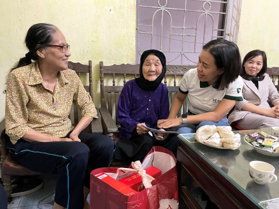 Cụ thể, ngày 06/02/2024, đại diện VCBL, bà Mai Thị Ngọc Hà - Chủ tịch Công đoàn, Phó Giám đốc Công ty cùng đoàn công tác đã trao tặng 80 suất quà tại xã Đông Xuân, huyện Sóc Sơn, Hà Nội và 80 suất quà tại Bệnh viện E - Hà Nội. Đoàn đã đến thăm hỏi, chúc Tết gia đình cụ Lê Thị Chính tại xã Đông Xuân, huyện Sóc Sơn. Cụ Lê Thị Chính năm nay 100 tuổi, là cán bộ lão thành cách mạng, vợ liệt sỹ, người có công nuôi giấu các đồng chí cán bộ chủ chốt như đồng chí Trường Chinh, đồng chí Lê Quang Đạo... Trước đó, ngày 29/01/2024, Công đoàn VCBL trao tặng quà Tết cho các hộ khó khăn trên địa bàn xã Bình Hưng, huyện Bình Chánh, TP. Hồ Chí Minh.