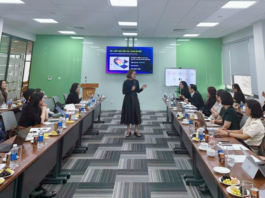 Diễn giả Lê Phương Anh - Chủ tịch MCG trình bày xu hướng đào tạo của doanh nghiệp trong kỷ nguyên số
