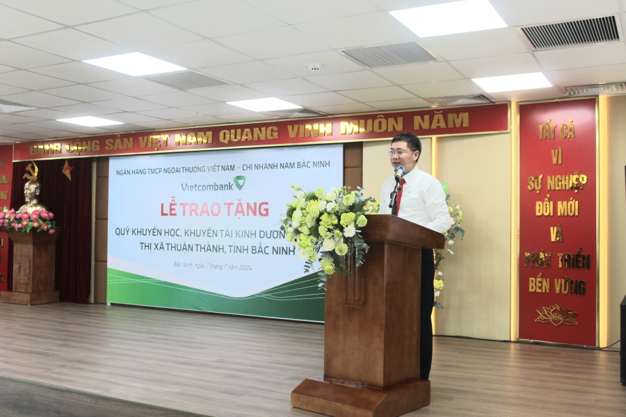 Chiều ngày 7/7/2024, Vietcombank Nam Bắc Ninh đã tổ chức lễ trao tặng 500 triệu đồng cho Quỹ khuyến học, khuyến tài Kinh Dương Vương thị xã Thuận Thành, tỉnh Bắc Ninh.