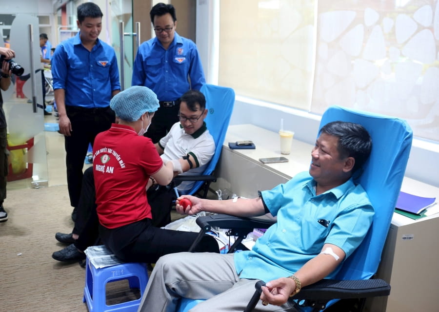 Đoàn viên các đoàn cơ sở trực thuộc Đoàn khối doanh nghiệp tỉnh Nghệ An cùng các đoàn viên Vietcombank Vinh, Vietcombank Bắc Hà Tĩnh tích cực tham gia hiến máu