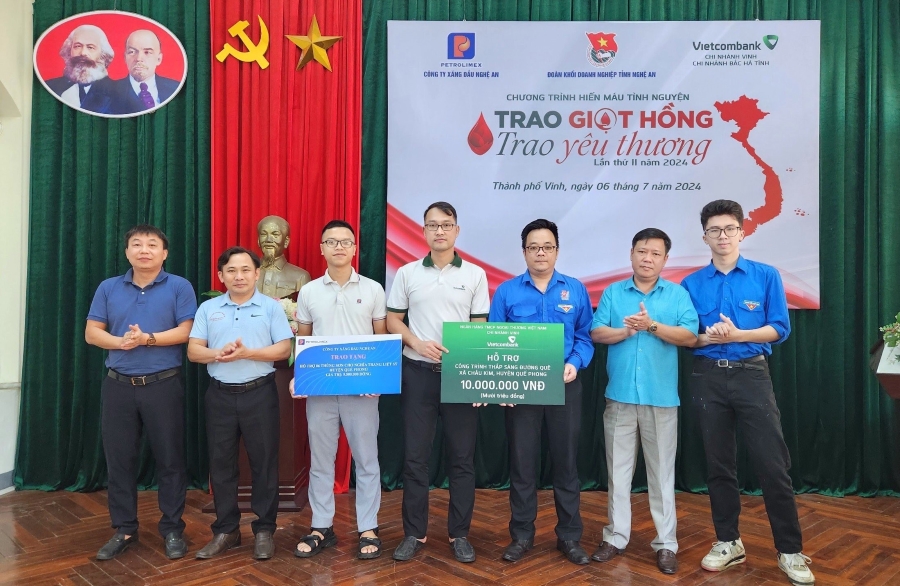 Trong khuôn khổ chương trình, thay mặt Đoàn thanh niên Vietcombank Vinh, đ/c Võ Tiến Hà - Bí thư Đoàn thanh niên đã trao 10 triệu đồng hỗ trợ công tác an sinh xã hội thực hiện công trình “Đường điện mặt trời, thắp sáng đường quê” tại xã Châu Kim, huyện Quế Phong - một xã nghèo đặc biệt khó khăn thuộc khu vực vùng cao miền núi Tây Nghệ An.
