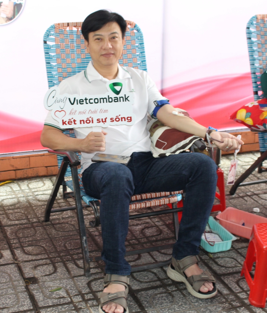 Niềm hạnh phúc khi trao gửi những giọt máu nghĩa tình từ tình nguyện viên Đào Xuân Tuấn - Trưởng phòng PGD Kiên Lương, Vietcombank Kiên Giang.