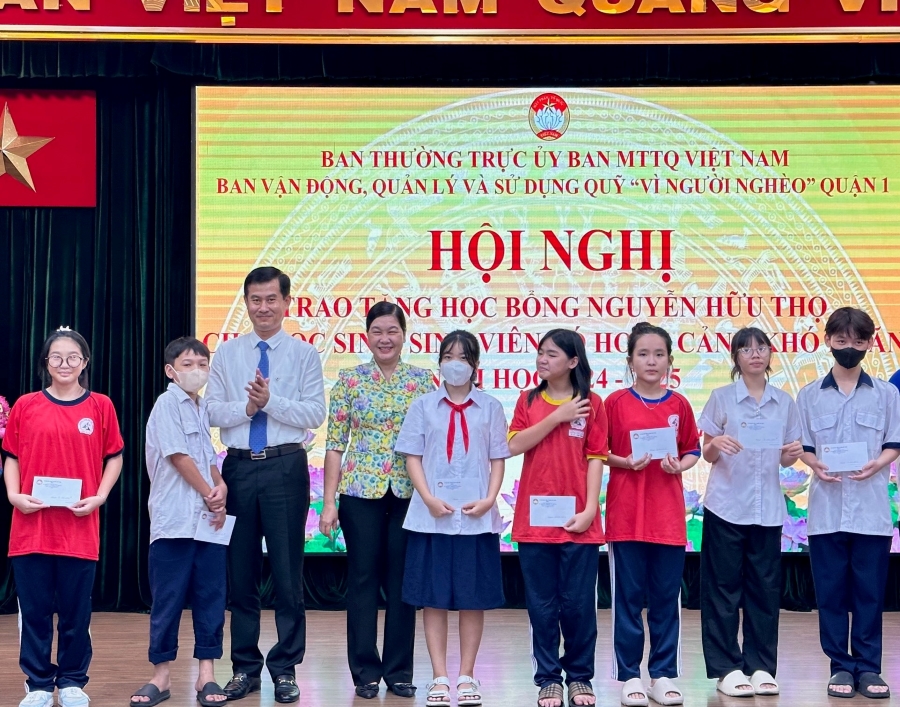Phát biểu tại sự kiện, đại diện lãnh đạo UB MTTQ VN Quận 1 đã báo cáo tóm tắt các hoạt động thiết thực của Quỹ “Vì người nghèo” Quận 1 trong năm 2024, trong đó học bổng Nguyễn Hữu Thọ là hoạt động tiêu biểu và ý nghĩa, thiết thực hỗ trợ trực tiếp cho các em học sinh, sinh viên trên địa bàn Quận 1 có thành tích học tập tốt, vượt khó học giỏi dù hoàn cảnh gia đình còn nhiều khó khăn, thiếu thốn.