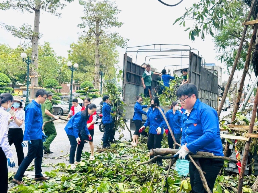 Cán bộ Vietcombank Nam Hải Phòng đã phối hợp khắc phục hậu quả sau cơn bão số 3