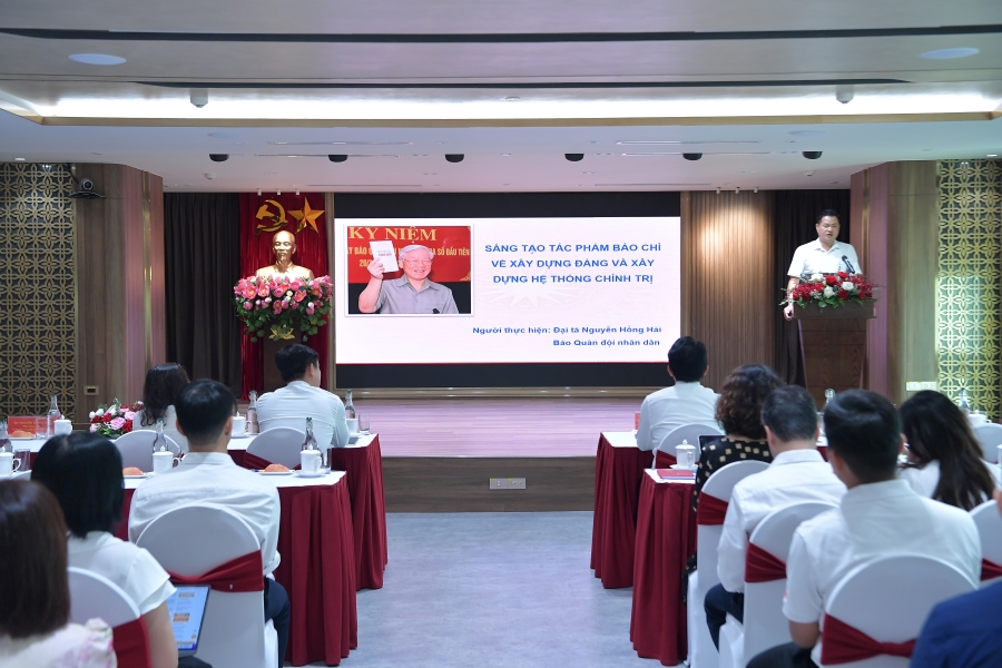 Hội nghị được nghe đồng chí đ/c Nguyễn Hồng Hải - Phó Tổng Biên tập Báo Quân đội Nhân dân trao đổi về kỹ năng lựa chọn đề tài, khai thác, xử lý thông tin và kinh nghiệm sáng tạo tác phẩm báo chí; đ/c Nguyễn Quang Vũ - Phó Giám đốc Trung tâm Truyền hình thông tấn truyền đạt về kỹ năng sáng tạo tác phẩm truyền hình.