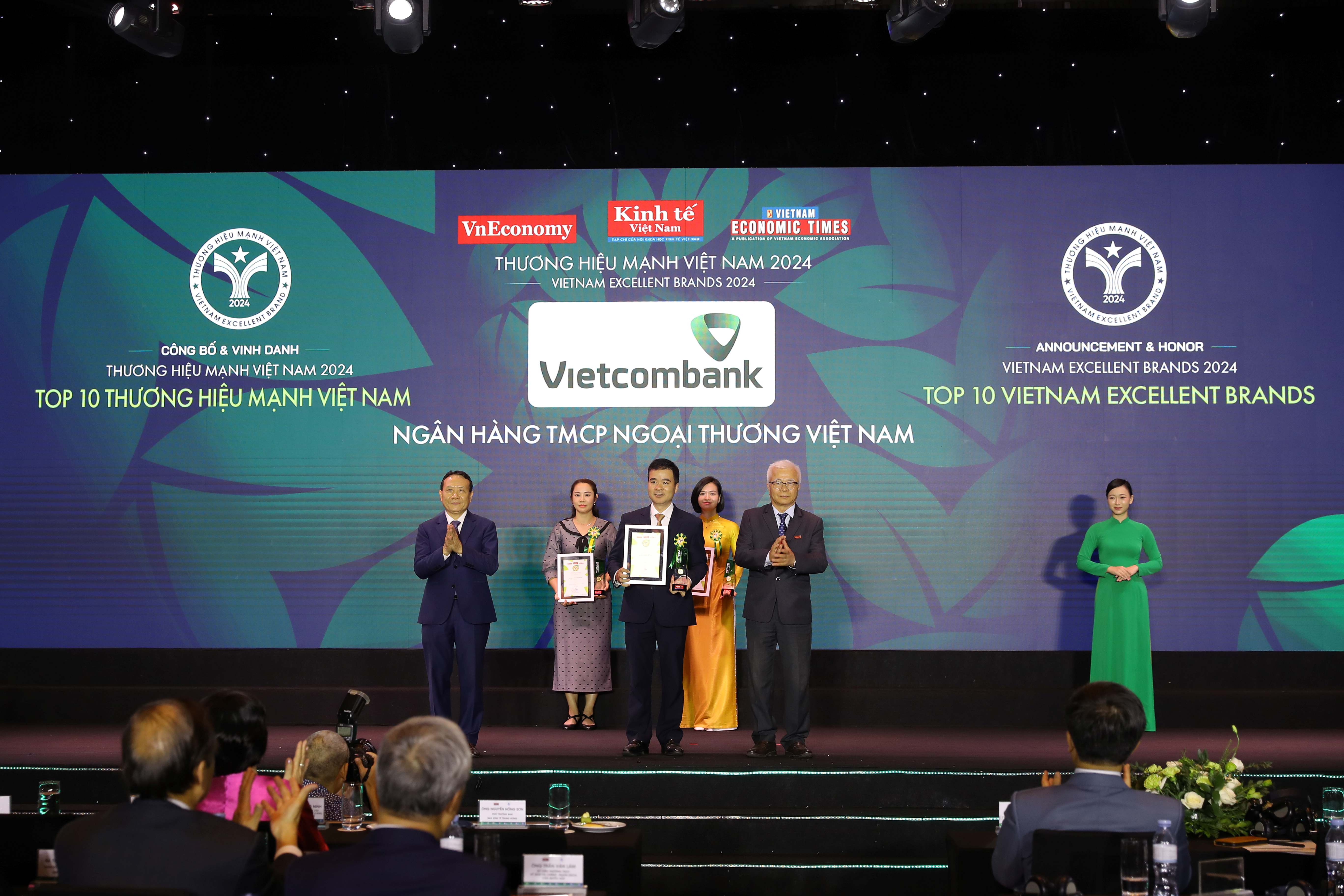 Ngày 16/10/2024, tại Hà Nội, Tạp chí Kinh tế Việt Nam (VnEconomy - Vietnam Economic Times) đã tổ chức Lễ công bố Thương hiệu mạnh Việt Nam 2024. Ngân hàng TMCP Ngoại thương Việt Nam (Vietcombank) tiếp tục được bình chọn là thương hiệu mạnh dẫn đầu ngành ngân hàng và xếp thứ 3 trong Top 10 thương hiệu mạnh Việt Nam.