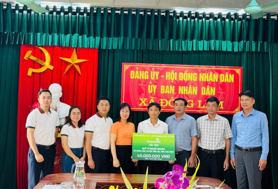 Hưởng ứng phong trào thi đua “Vì người nghèo - Không để ai bị bỏ lại phía sau”, ngày 22/11/2024, Vietcombank Bắc Hà Nội đã tài trợ số tiền 40 triệu đồng ủng hộ Quỹ Vì người nghèo cho Ủy ban MTTQ Việt Nam xã Đông Lâm, huyện Tiền Hải, tỉnh Thái Bình.