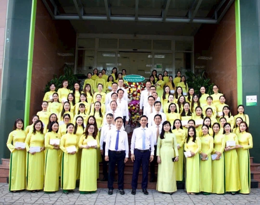 Về phía Đảng ủy Vietcombank, có đ/c Nguyễn Thanh Tùng - Uỷ viên BCH Đảng bộ Khối DNTW, Bí thư Đảng ủy, Chủ tịch HĐQT; đ/c Đỗ Việt Hùng - Phó Bí thư thường trực Đảng ủy, Thành viên HĐQT; đ/c Lê Quang Vinh - Ủy viên Ban thường vụ Đảng ủy, Phó Tổng Giám đốc phụ trách Ban điều hành cùng các đ/c Ủy viên Ban thường vụ Đảng ủy; các đ/c đại diện lãnh đạo cho các đơn vị tham mưu giúp việc của Đảng ủy.