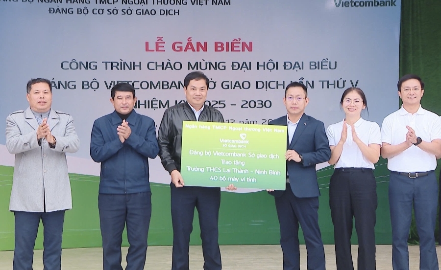 Ngày 14/12/2024, tại Trường THCS Lai Thành, xã Lai Thành, huyện Kim Sơn, tỉnh Ninh Bình, BCH Đảng bộ Vietcombank Sở giao dịch đã phối hợp cùng Ban Giám hiệu Trường THCS Lai Thành tổ chức lễ gắn biển công trình chào mừng Đại hội Đại biểu Đảng bộ Vietcombank Sở giao dịch lần thứ V, nhiệm kỳ 2025 - 2030.