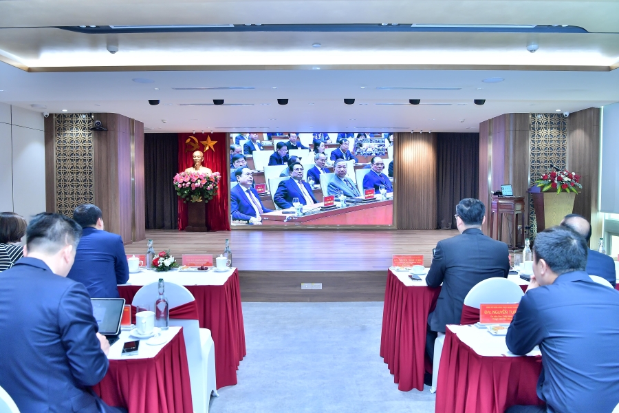 Toàn cảnh Hội nghị toàn quốc về đột phá phát triển khoa học, công nghệ, đổi mới sáng tạo và chuyển đổi số quốc gia tại điểm cầu TSC Vietcombank