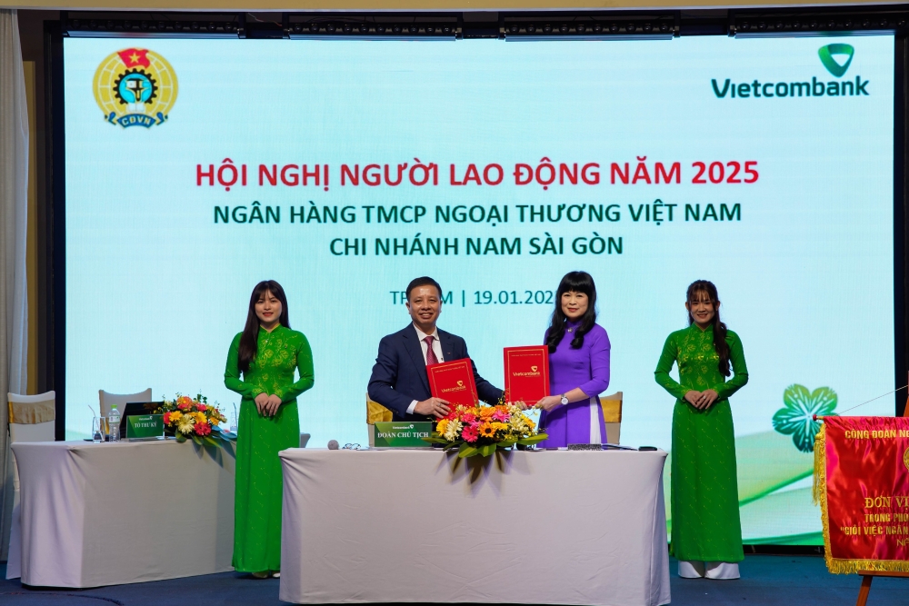 Hội nghị người lao động Vietcombank Nam Sài Gòn năm 2025 là diễn đàn dân chủ để người lao động được tham gia đóng góp ý kiến, phát huy quyền làm chủ và thực hiện dân chủ trong hoạt động theo quy định tại quy chế dân chủ cơ sở. Hội nghị đã thông qua các báo cáo thực hiện thỏa ước lao động tập thể 2023, báo cáo của ban thanh tra nhân dân và phát động thi đua hoàn thành các chỉ tiêu kinh doanh năm 2025. Đ/c Nguyễn Thị Tố Hương - Phó Bí thư Đảng bộ, Phó giám đốc, Chủ tịch Công đoàn đã đại diện người lao động ký thỏa ước người lao động với đại diện người sử dụng lao động là đ/c Nguyễn Như Tưởng - Bí thư Đảng bộ, Giám đốc chi nhánh.