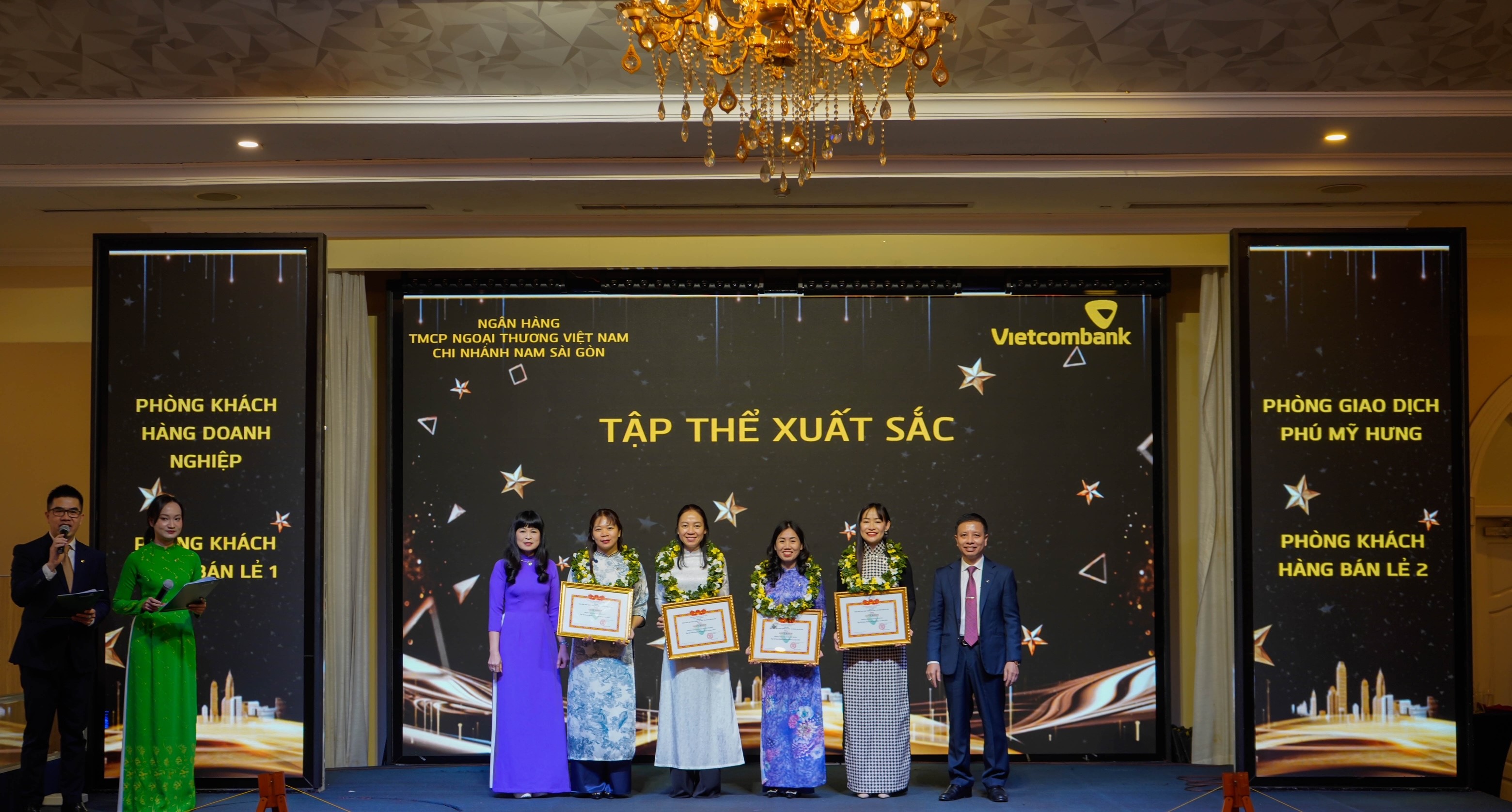 Với những thành tích đạt được về công tác Đảng và hoạt động kinh doanh, năm 2024, Đảng bộ Chi nhánh Nam Sài Gòn được khen thưởng “Đảng bộ hoàn thành xuất sắc nhiệm vụ”, Vietcombank Nam Sài Gòn vinh dự là 01 trong 03 đơn vị được vinh danh là “Đơn vị đặc biệt xuất sắc”, đạt giải thưởng “Đơn vị tiêu biểu về tăng trưởng tín dụng hiệu quả và chất lượng năm 2024”. Công đoàn cơ sở Vietcombank Nam Sài Gòn và Đoàn thanh niên được xếp loại hoàn thành xuất sắc nhiệm vụ năm 2024. Kết quả đạt được thể hiện sự lãnh đạo chỉ đạo sáng suốt, đầy bản lĩnh của Đảng ủy, Ban Giám đốc chi nhánh trên các mặt hoạt động cùng với sự chung sức, đồng lòng của toàn thể các cán bộ nhân viên Vietcombank Nam Sài Gòn.