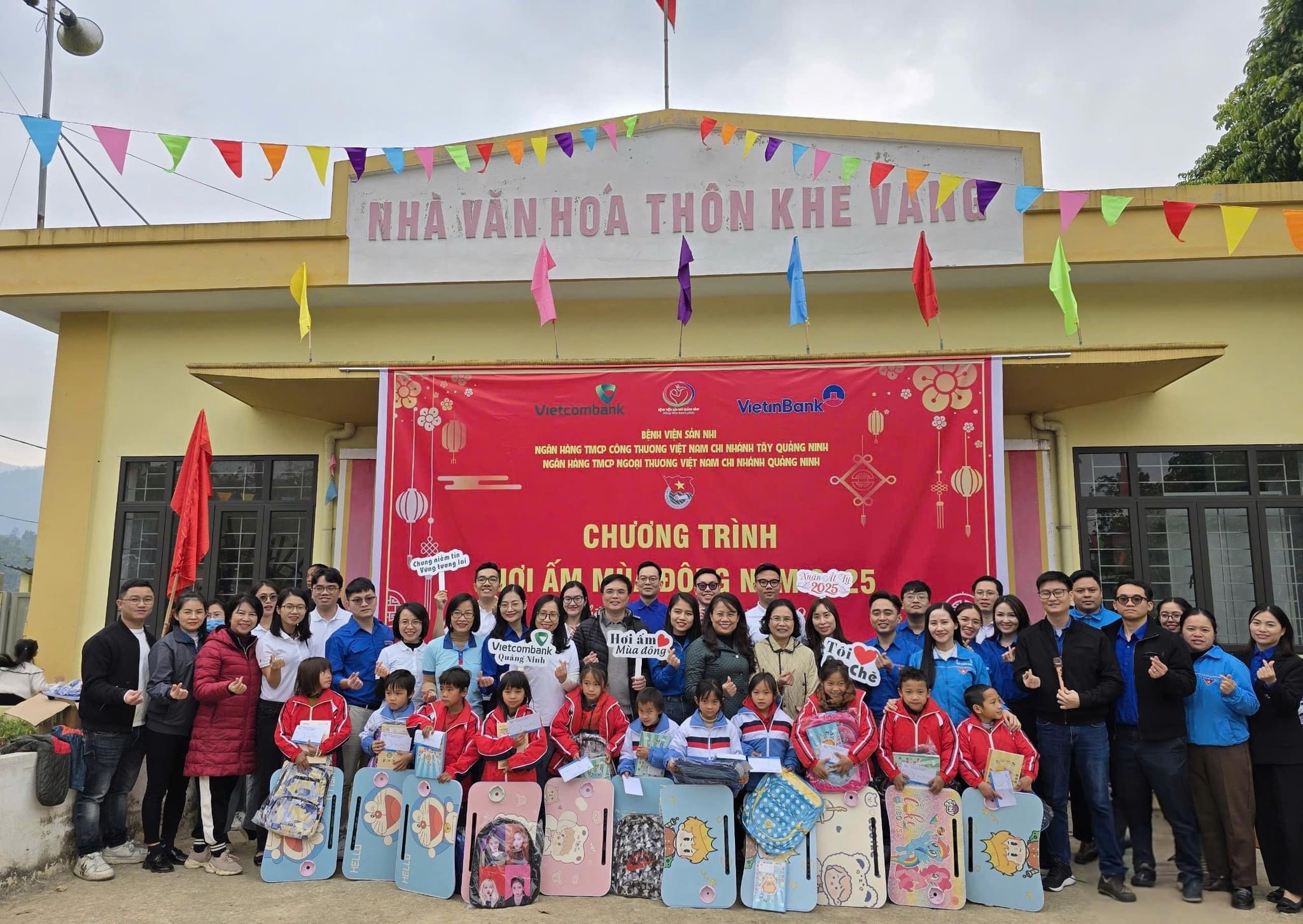 Với mong muốn mang đến những phút giây ấm áp yêu thương cho đồng bào vùng sâu vùng xa trong những ngày cận Tết, ngày 18/01/2025, Vietcombank Quảng Ninh đã phối hợp cùng Đoàn Thanh niên Bệnh viện sản nhi Quảng Ninh các đơn vị hảo tâm trên địa bàn, tổ chức chương trình thiện nguyện "Hơi ấm mùa xuân 2025" tại thôn Khe Vang, xã Đồn Đạc, huyện Ba Chẽ với những hoạt động tình nguyện ý nghĩa. Từ đồng bằng miền xuôi, Vietcombank Quảng Ninh đã đem đến miền núi xa xôi những đồ dùng học tập cho các em học sinh, những bao gạo, những chiếc áo ấm, những nhu yếu phẩm cần thiết phục vụ cho cuộc sống của bà con nơi đây với tổng kinh phí tài trợ 30 triệu đồng. Nụ cười của các em nhỏ khi được nhận những chiếc cặp sách, ánh mắt hạnh phúc của người dân khi được khám bệnh là nguồn động lực to lớn, khẳng định giá trị thực tiễn của chương trình. Sự kết hợp giữa Vietcombank Quảng Ninh cùng Đoàn Thanh niên Bệnh viện sản nhi Quảng Ninh các đơn vị hảo tâm đã lan tỏa hơi ấm trong những ngày Xuân về, minh chứng rõ nét cho sức mạnh của tinh thầm đoàn kết, lòng nhân ái và trách nhiệm vì cộng đồng.