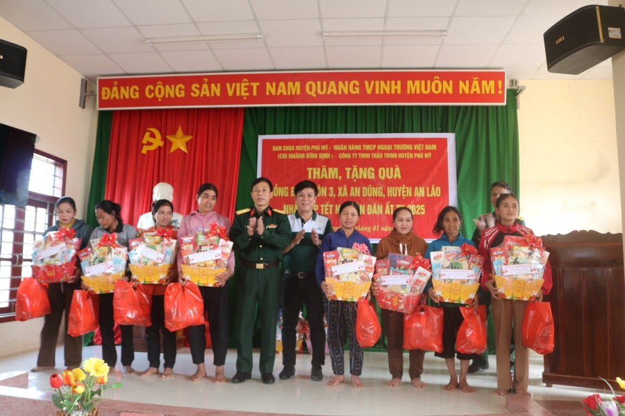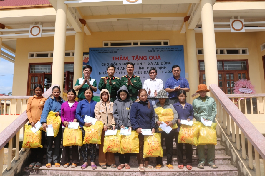 Hưởng ứng ngày Quốc tế xóa nghèo và tháng cao điểm “Vì người nghèo” Việt Nam, ngày 23/01/2025, Vietcombank Bình Định phối hợp cùng Ban Chỉ huy quân sự huyện Phù Mỹ đã trao tặng nhiều suất quà cho các hộ nghèo miền núi tại thôn 3, xã An Dũng, huyện An Lão, tỉnh Bình Định, trong đó Vietcombank Bình Định tặng 126 suất quà, mỗi suất trị giá 500 nghìn đồng, Ban Chỉ huy quân sự huyện Phù Mỹ kết hợp Công ty TNHH Thảo Trinh (huyện Phù Mỹ) tặng 126 suất quà cho người nghèo, 20 suất quà bằng hiện vật cho người tàn tật và các phần quà bánh chưng, bánh tét do đơn vị tự gói. Thôn 3, xã An Dũng là thôn miền núi đặc biệt khó khăn có 126 hộ dân người Hre, đa số là hộ nghèo và là đơn vị kết nghĩa theo phân công của Chủ tịch UBND tỉnh Bình Định.